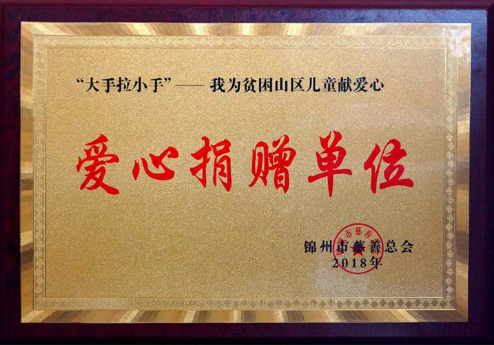 我公司被錦州市慈善總會授予“愛心捐贈單位”稱號