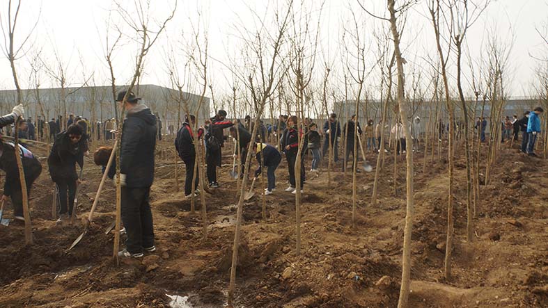 全體參加植樹(shù)活動(dòng)的員工準(zhǔn)時(shí)到位,在結(jié)束了短暫的人員組隊(duì),劃分區(qū)域和領(lǐng)取工具等準(zhǔn)備工作后,迅速的投入到植樹(shù)活動(dòng)當(dāng)中。各小組成員分工明確,積極踴躍。很多隊(duì)伍在組長(zhǎng)的帶領(lǐng)下,領(lǐng)樹(shù)苗、放樹(shù)苗、填土、培土、澆水相互配合,干得熱火朝天。許多小組高效率高質(zhì)量的完成本隊(duì)植樹(shù)任務(wù)后,迅速投入到其他隊(duì)伍中,互幫互助。在全體員工有組織有紀(jì)律的高效協(xié)作的前提下,在不到兩個(gè)半小時(shí)的時(shí)間內(nèi),共計(jì)完成1800棵樹(shù)苗的栽種工作,綠化面積達(dá)12000多平方米。此次植樹(shù)活動(dòng),進(jìn)一步改善了控感廠區(qū)的生產(chǎn)環(huán)境,把原本空曠的廠區(qū)西南角的一片空地裝點(diǎn)得煥然一新!