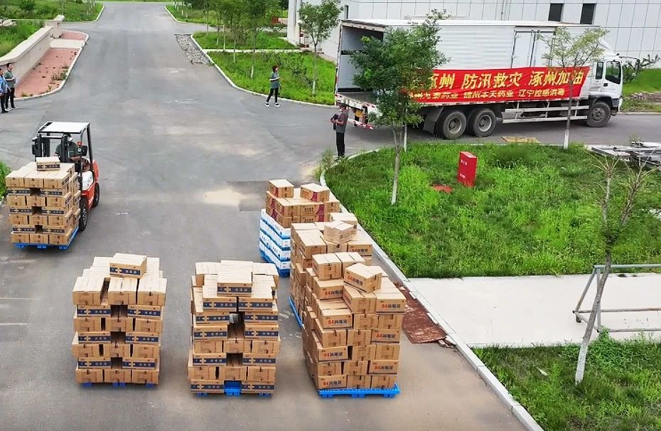 8月5日到7日,錦州九泰藥業(yè)及集團(tuán)下屬錦州本天藥業(yè)、遼寧控感消毒科技公司三家企業(yè)上下聯(lián)動(dòng),全力組織員工從三家企業(yè)庫(kù)房緊急調(diào)配包括復(fù)方氯己定撒粉、復(fù)方紫荊皮水楊酸溶液、硫酸慶大霉素碳酸鉍膠囊、蒲地藍(lán)消炎片、對(duì)乙酰氨基酚片、氨咖黃敏膠囊、乙醇消毒液、84消毒液、碘伏消毒液及消毒片等價(jià)值300多萬(wàn)元的急需藥品及消毒用品。其中消毒消殺用品因庫(kù)存不足,企業(yè)臨時(shí)決定增加生產(chǎn)計(jì)劃,員工加班加點(diǎn)24小時(shí)連續(xù)生產(chǎn),爭(zhēng)分奪秒,將1400余件的救援藥品馳援涿州、五常、舒蘭等地,用于災(zāi)區(qū)救援,保障受災(zāi)群眾人身安全,助力災(zāi)后重建及復(fù)工復(fù)產(chǎn)等工作。